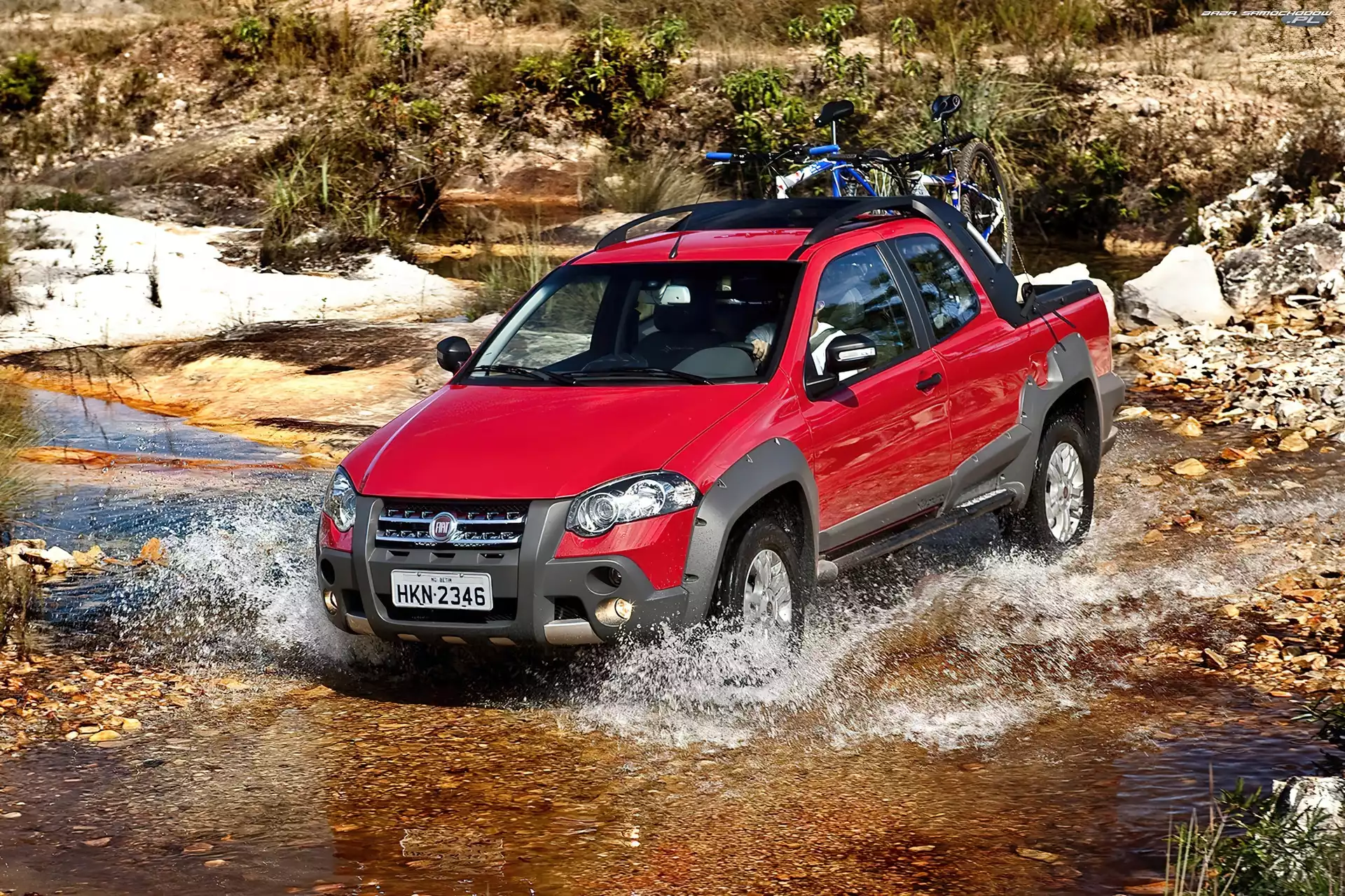 Widok, Góry, Fiat Strada, Z Fiat Strada, Rzeka Fiat Strada, Sporting Progi, Zapasowe, Fiat Strada, Koło Halogeny, Srebrny, Fiat Strada SUV, Fiat Strada, Pakiet Strada Ksenonowe, Fiat Strada, Reflektory Up, Fiat, Pick Fiat Strada, Paki, Biały, Klapa Offroad, Przeprawa, Fiat Strada Working, Użytkowy, Fiat Strada Up, Fiat Strada, Pick Paka, Tył, Fiat Strada